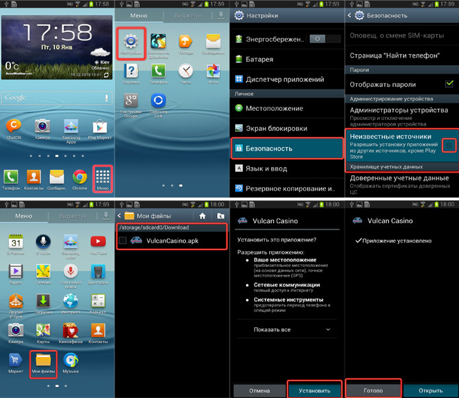 Итак, представим, что ты уже загрузил apk файл себе на телефон с официального сайта казино Вулкан или можешь скачать официальное приложение непосредственно с этой страницы по ссылке: http://vulkan911.ru/app/